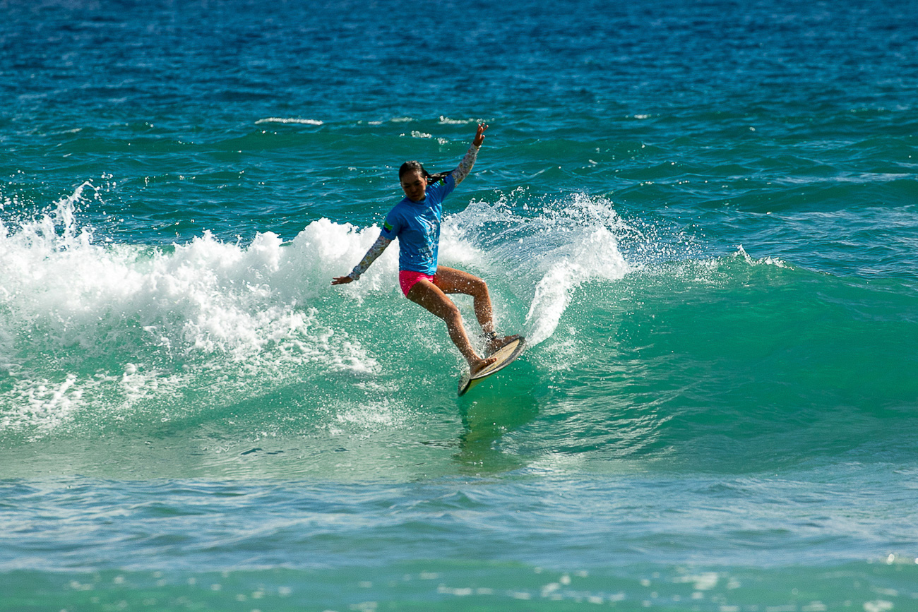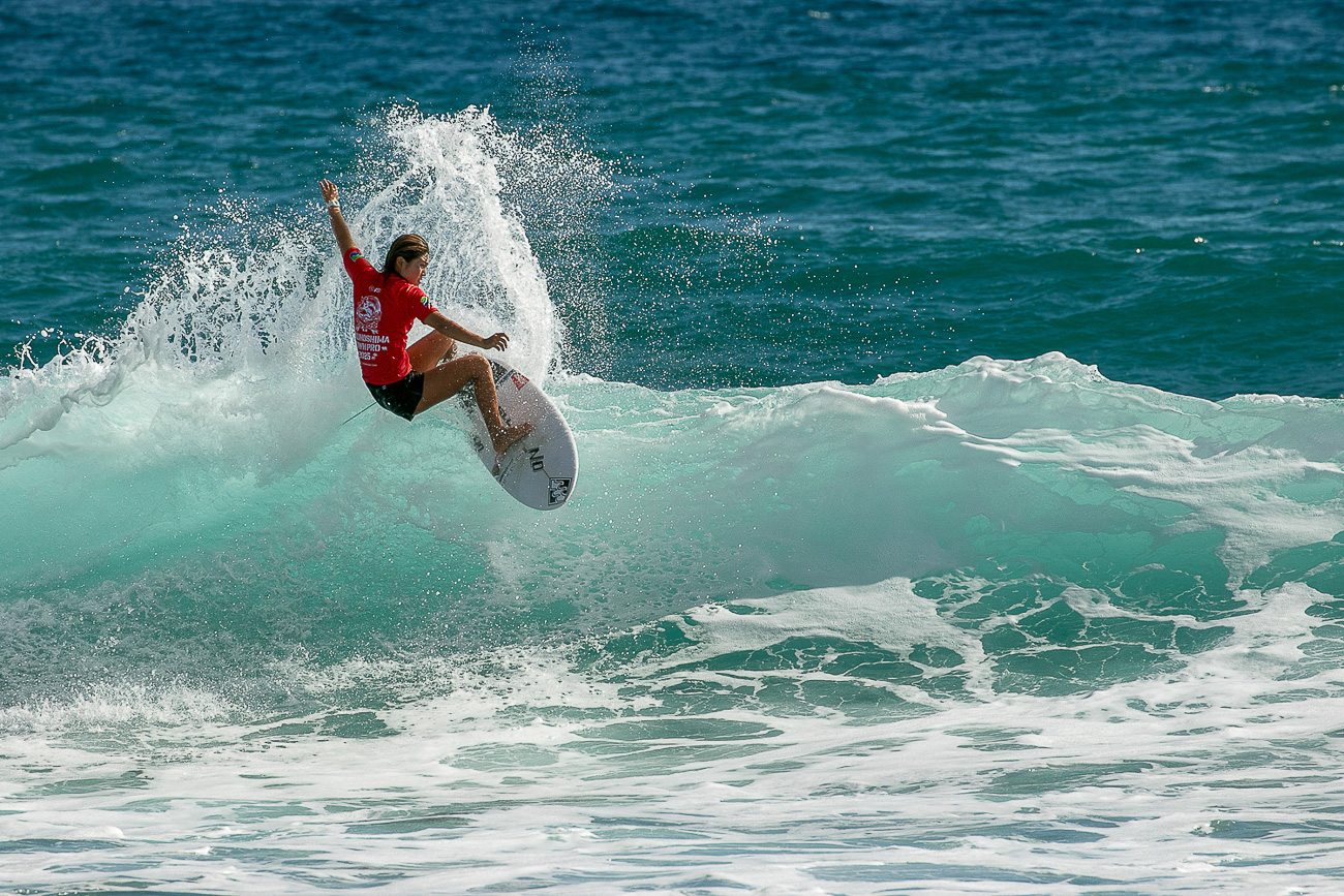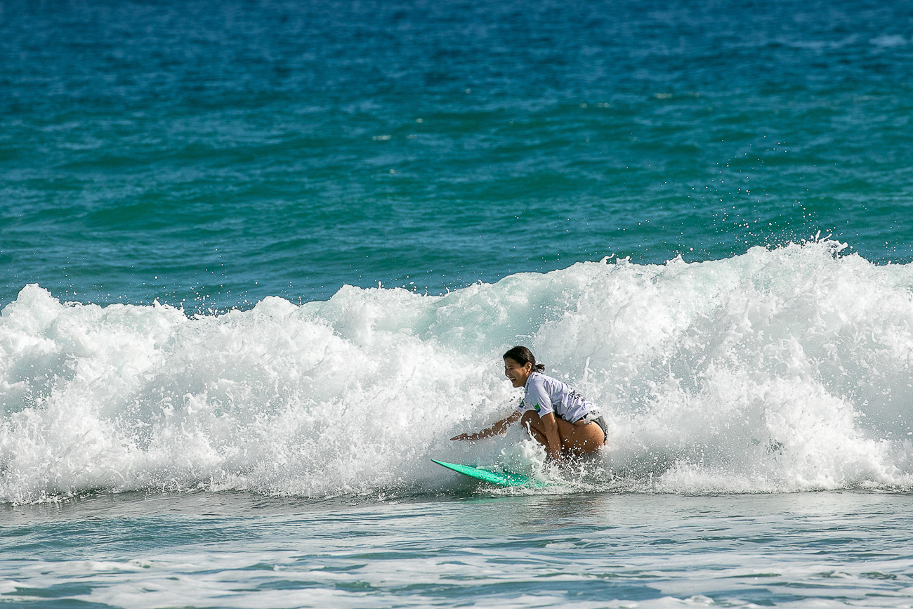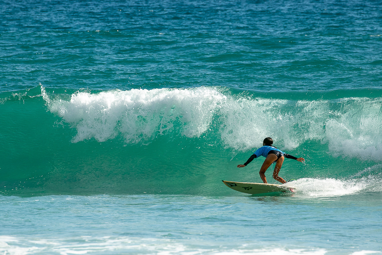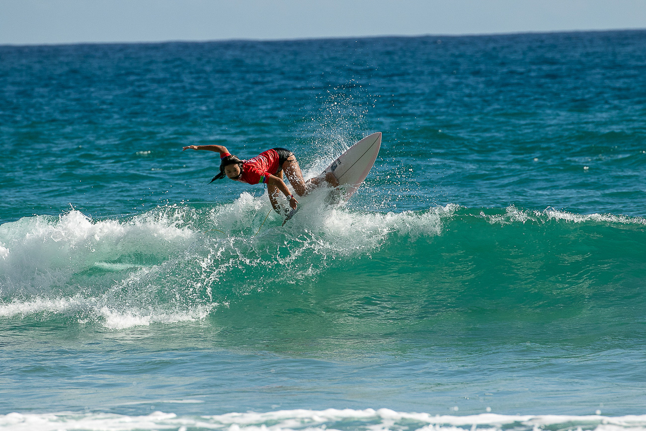ヒート2には吉田花子、ヤマダカナ、ナガタシオリ。吉田は序盤から攻めのサーフィンで4.00を出し、続くバックサイドのコンビネーションで5.83をマーク。1位をキープしたままヒートを支配した。山田と永田は追い上げを図るも波が少なく、終盤に山田が2.17を加点して2位を確保。吉田と山田がファイナルデイへ駒を進めた。