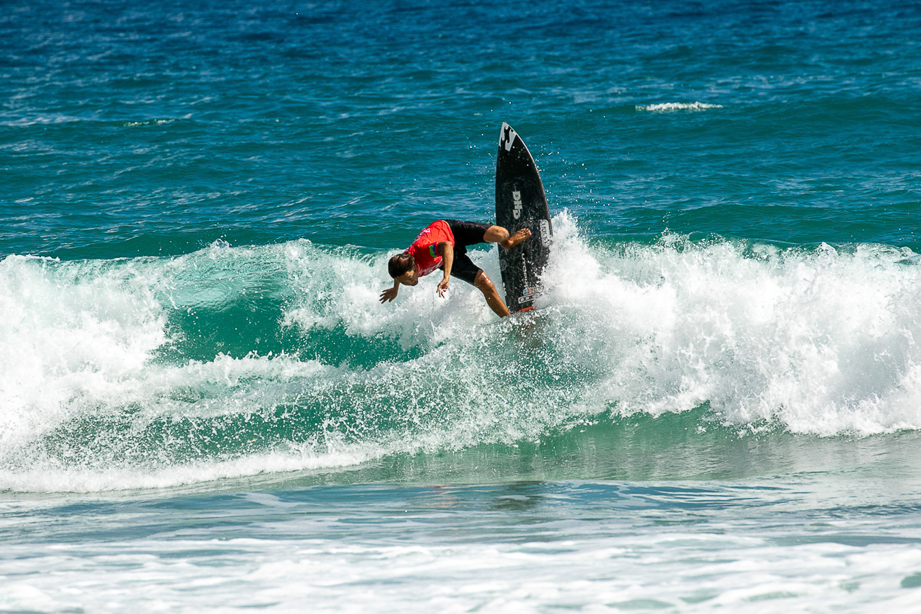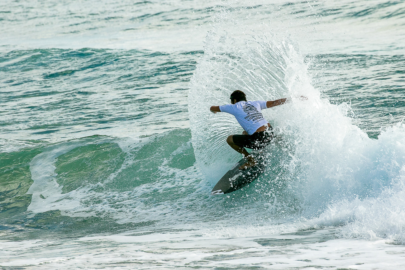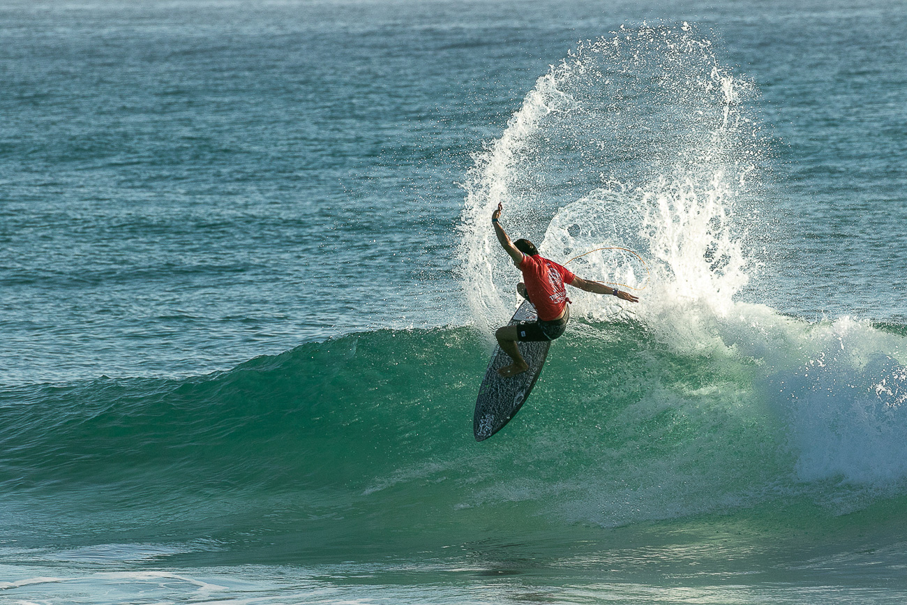 大会2日目の朝は、美しい朝日とともに幕を開けた。予報に反して風はオフショア。サイズも少し上がり、胸~肩、時折それ以上の波がコンスタントに押し寄せる。アウトからインサイドまで2~3発のターンが入る波が届き、会場には初日以上の期待感が漂った。