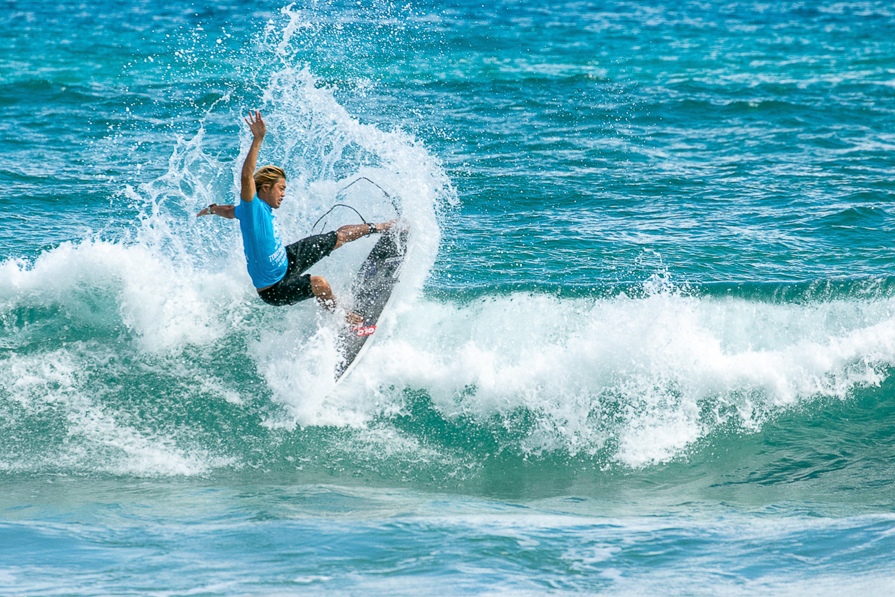 第1ヒートは小林圭 vs 太田拓杜。序盤から小林が波に乗り続け、4.50に加えエアーリバースで6.83をスコア。トータル11.93で快勝し、ファイナルデイ進出を決めた。