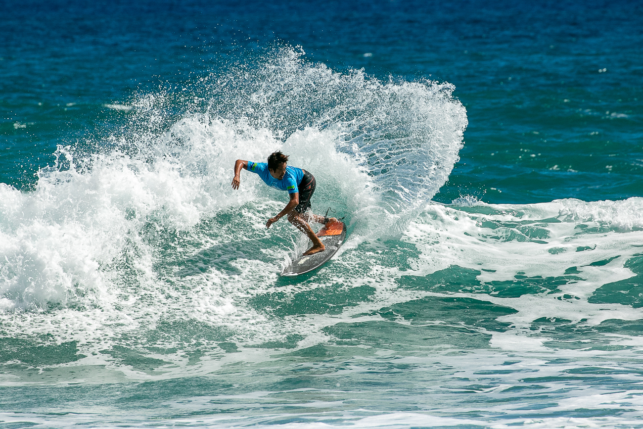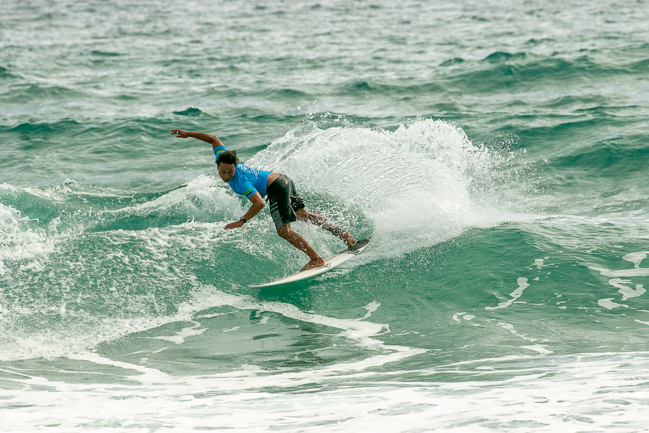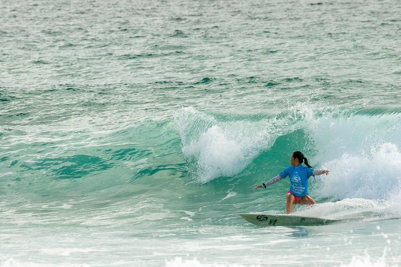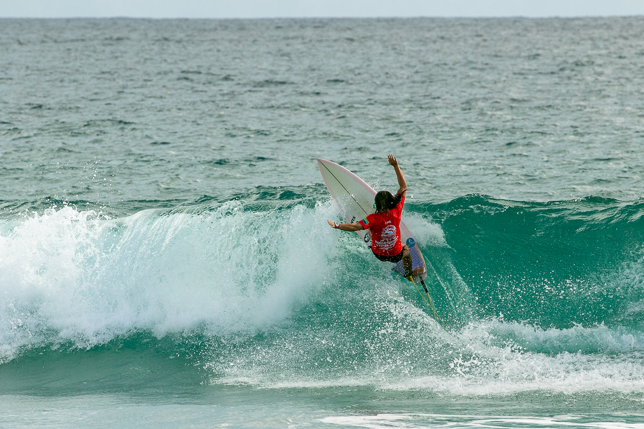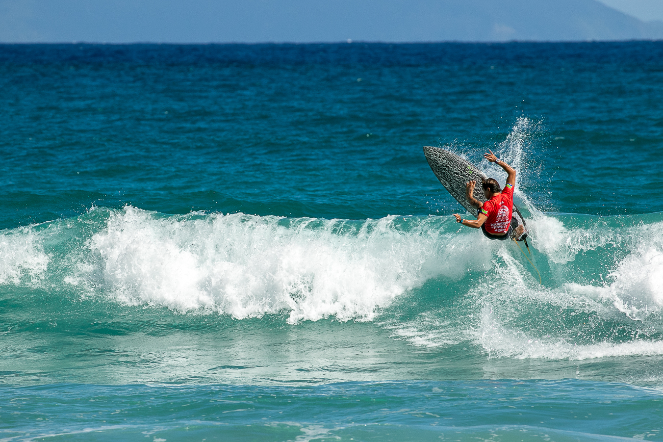 今シーズン絶好調の小林は、この日も序盤から積極的に波に乗る。4.33と3.83を揃えると、さらにライトでスプレーを飛ばすターンを連続し4.80をマーク。観客が沸いたのは残り3分、エアーリバースをクリーンに決めて5.83を加点。ヒートトータルを大きく伸ばし、圧倒的な強さを見せつけてファイナルへ。大音もバックサイドで攻め続けたが、大きなスコアには結びつかず敗退。それでもここまでの勝ち上がりは観客から大きな称賛を集めた。