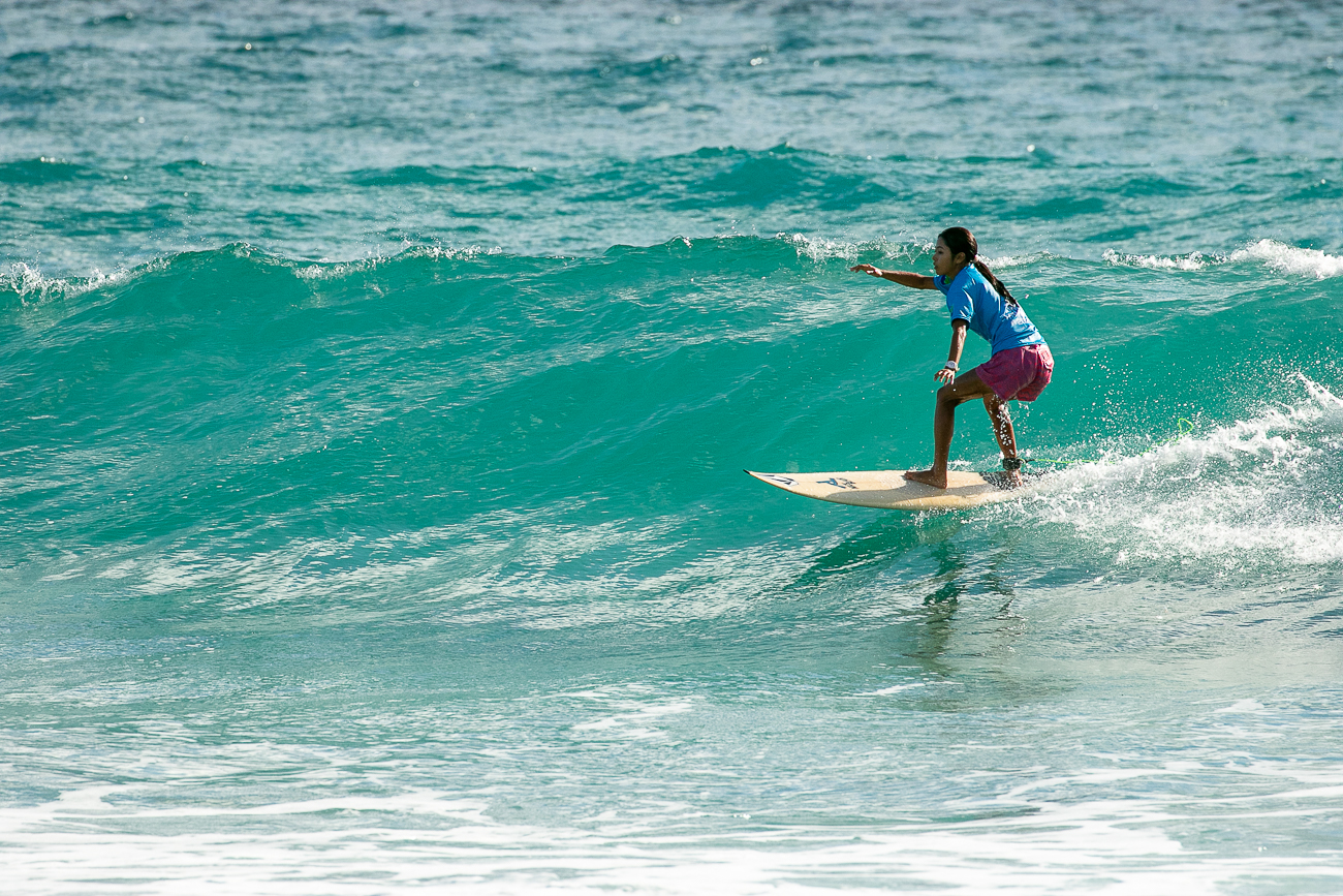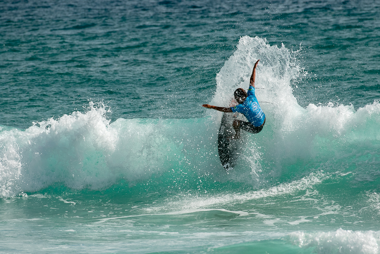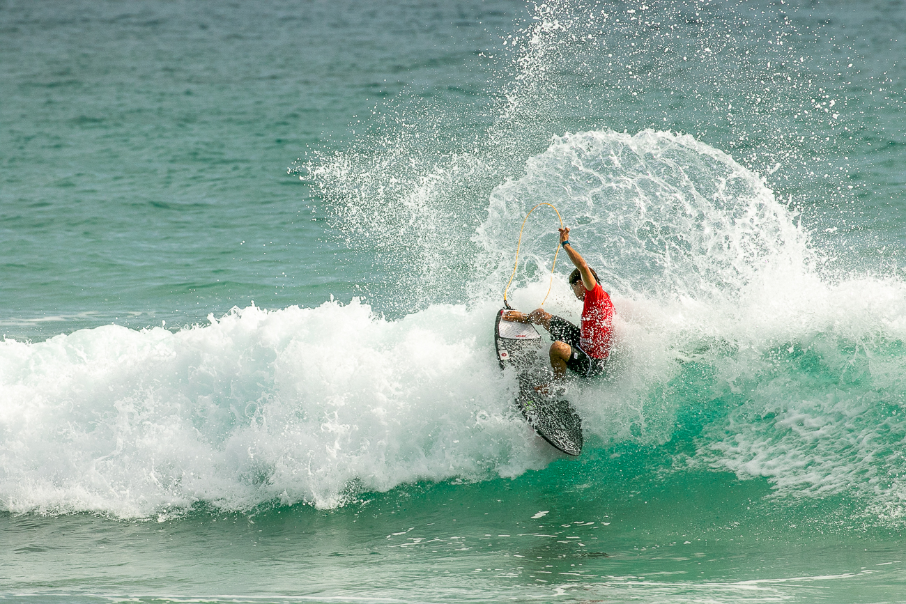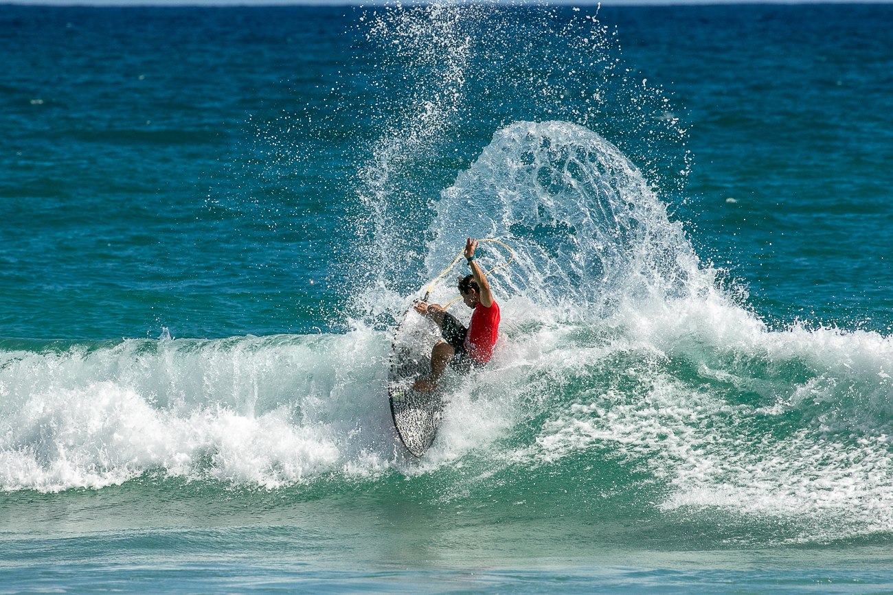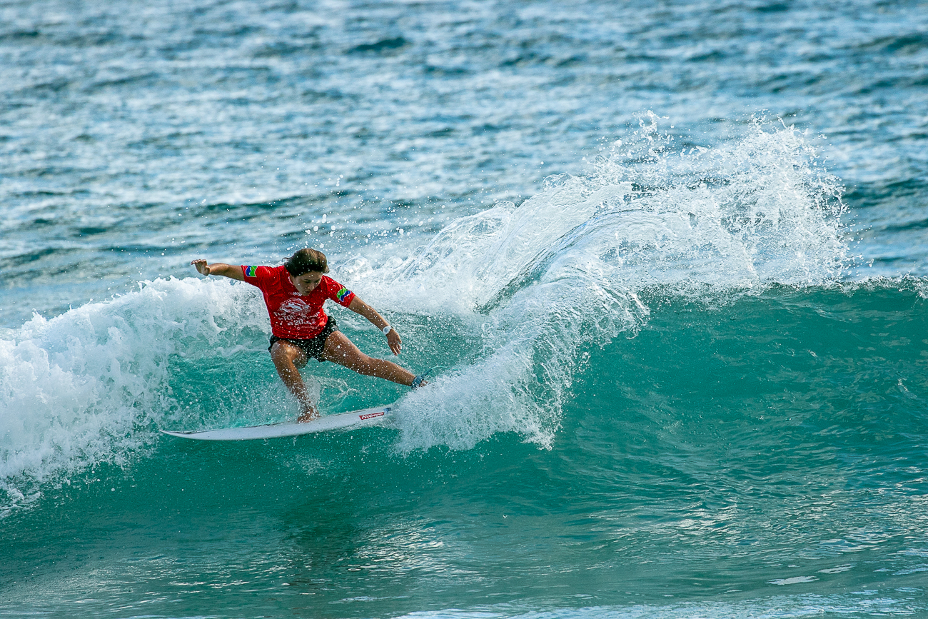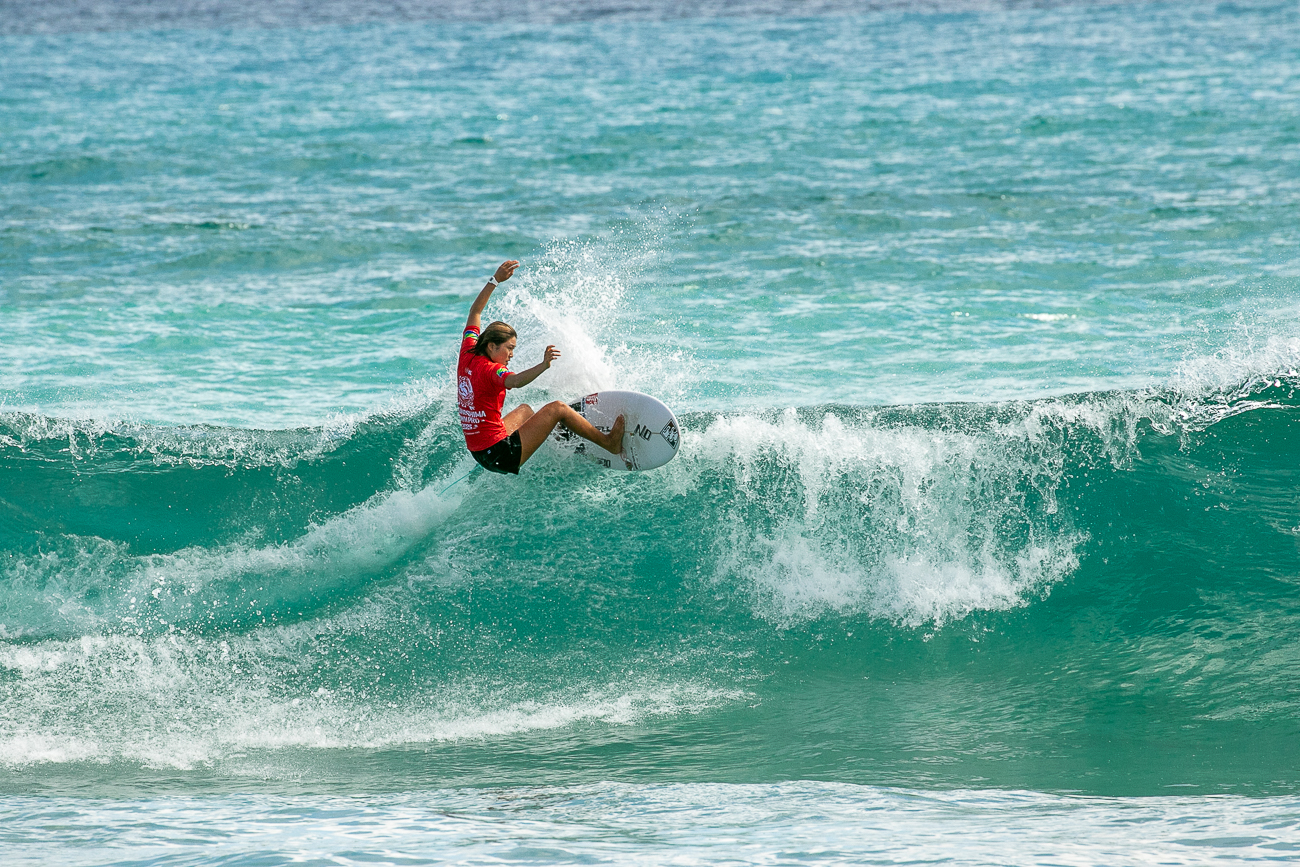 今シーズン絶好調の小林は、この日も序盤から積極的に波に乗る。4.33と3.83を揃えると、さらにライトでスプレーを飛ばすターンを連続し4.80をマーク。観客が沸いたのは残り3分、エアーリバースをクリーンに決めて5.83を加点。ヒートトータルを大きく伸ばし、圧倒的な強さを見せつけてファイナルへ。大音もバックサイドで攻め続けたが、大きなスコアには結びつかず敗退。それでもここまでの勝ち上がりは観客から大きな称賛を集めた。