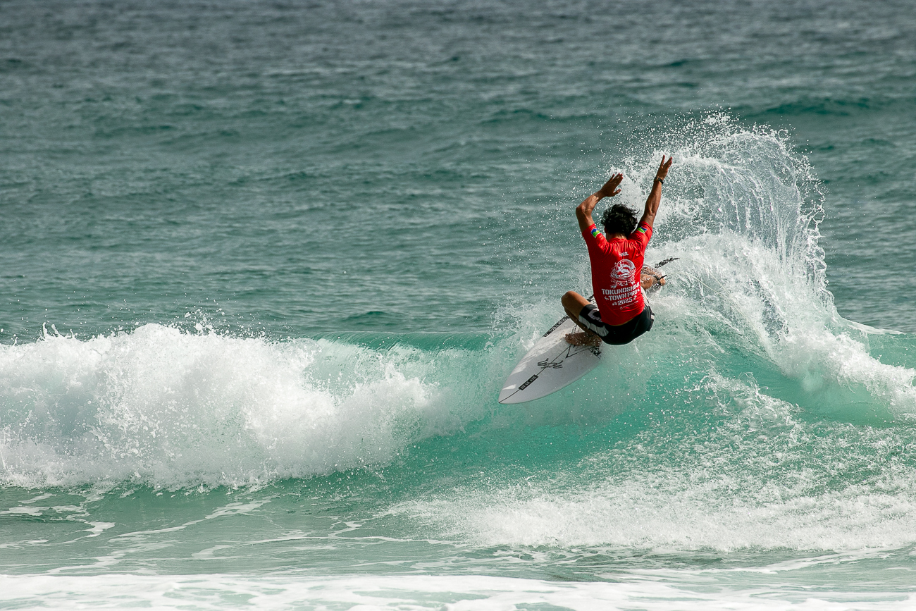 最初に動いた吉田はバックサイドで鋭い3ターンを決め、いきなり5.83を叩き出す。さらにライトで深いボトムターンから大きな縦へのリッピングを繰り出し、5.67をマーク。序盤からリードを固める。山田はじっくりと波を待つ戦術を取るが、形のいいレフトを掴んでも1点台に留まり、なかなかスコアを伸ばせない。中盤、吉田は再びグッドウェーブを掴み、6.83を追加。トータル12.66とし、山田を完全にコンビネーションに追い込む。最後まで果敢に波を探した山田だったが逆転はならず、吉田がファイナル進出を決めた。